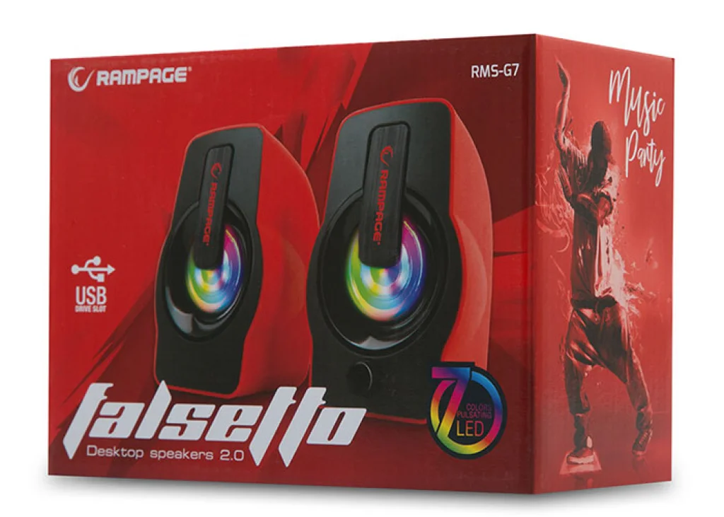 Hoparlör Speaker Usb 6W Rgb Ledli Rampage Falsetto RMS-G7 Kırmızı