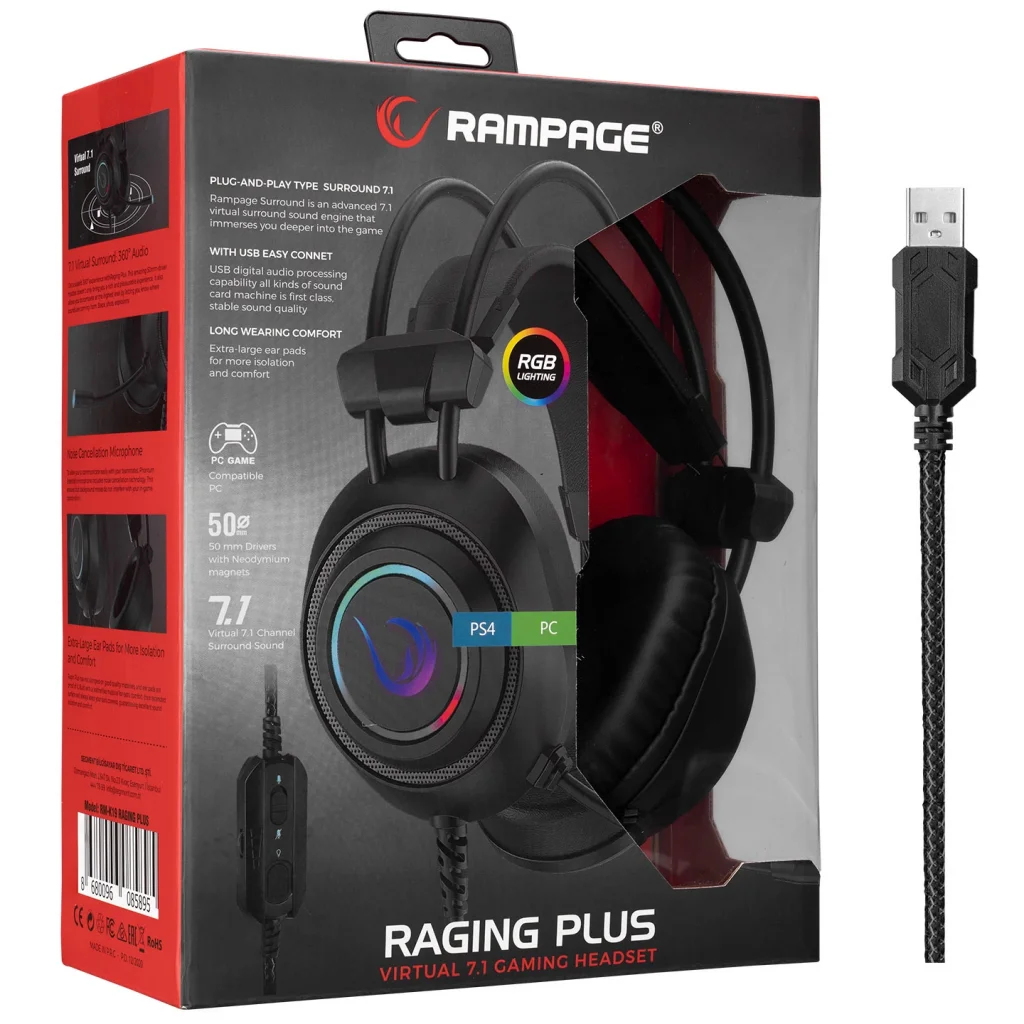 Kulaklık Mikrofonlu Oyuncu Usb 7.1 RGB Işık Rampage RM-K19 Raging Plus