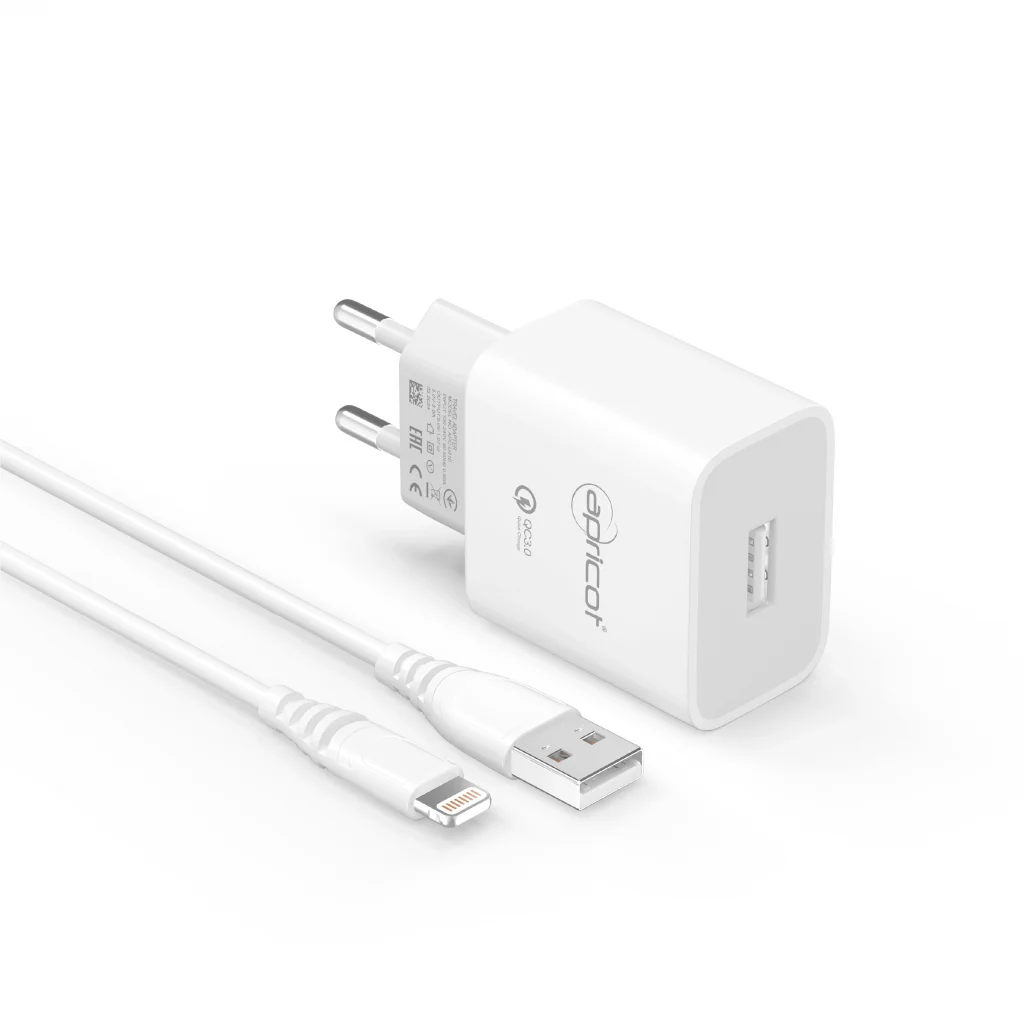 Şarj Aleti Takım İphone Lightning 5V 3.4A Apricot APC-U310L Beyaz